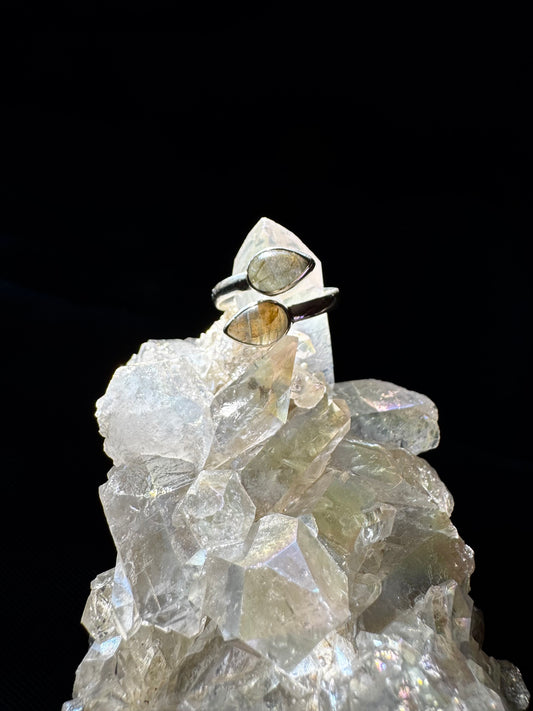 💍🌙 Anillo Ajustable de Plata con Doble Labradorita 🌙💍