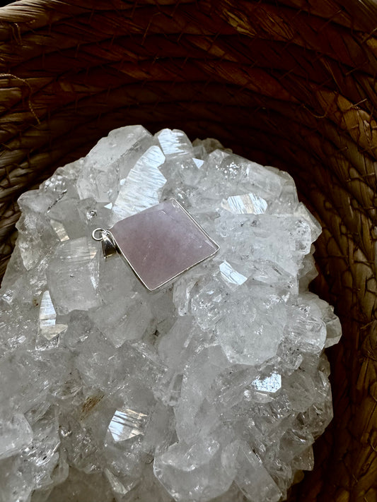 💗 Colgante Pirámide de Cuarzo Rosa – Geometría Sagrada