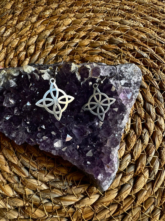 🔱 Pendientes Nudo de Bruja Sencillo – Acero Plateado