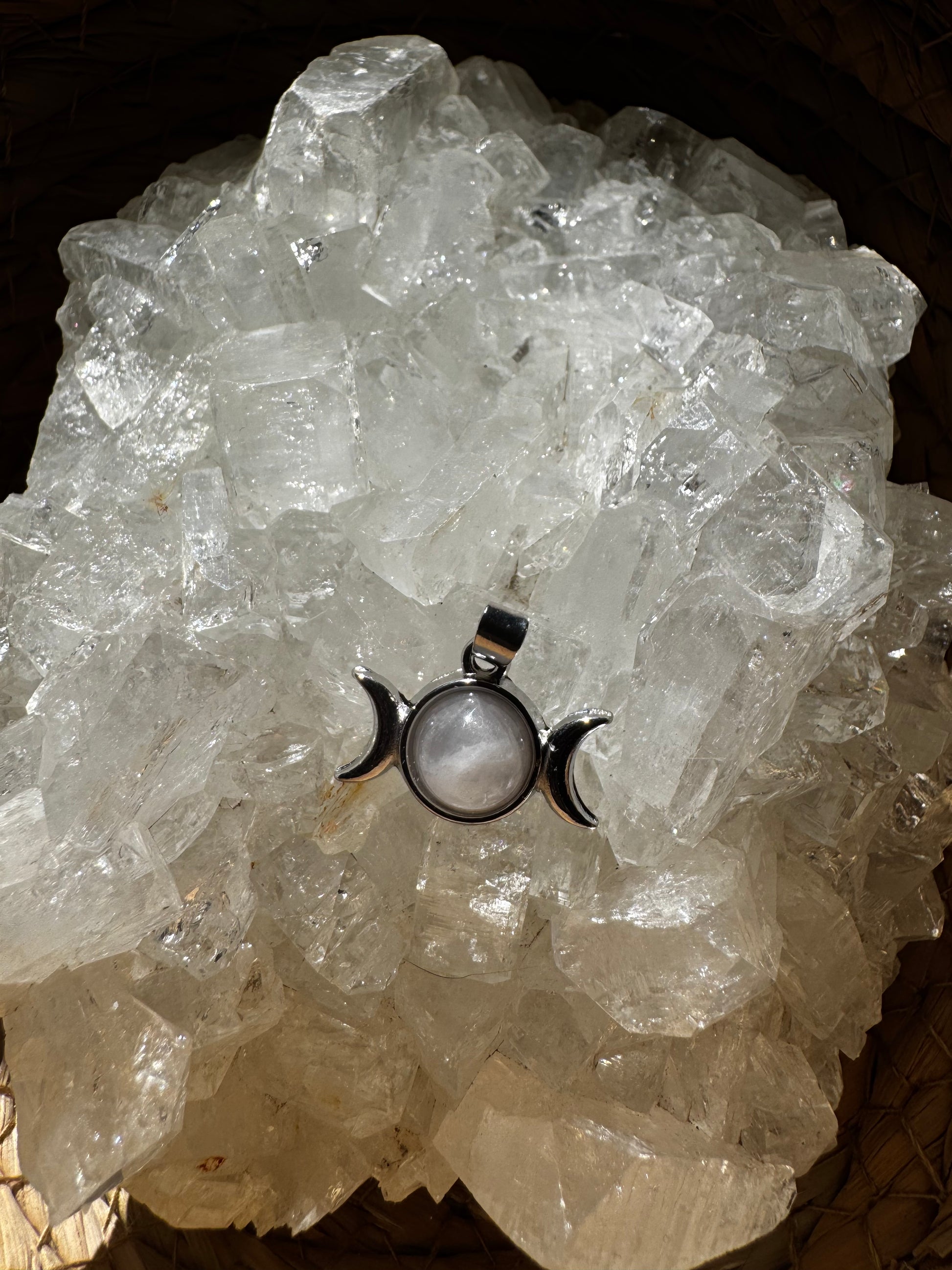 Colgante Triple Diosa con Cuarzo Blanco – Pureza y Claridad ✨
