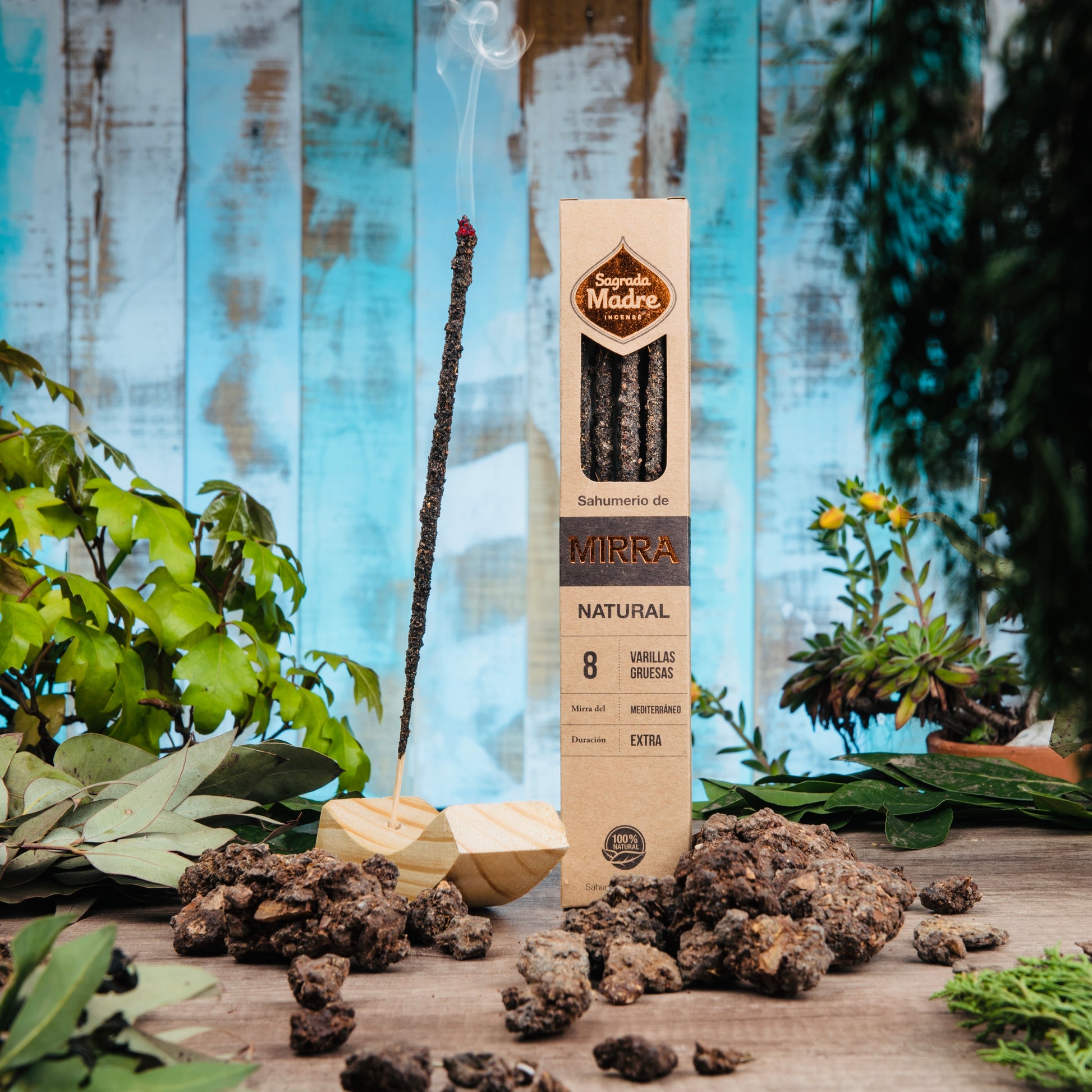 El incienso de Mirra se utiliza para la purificación, protección, sanación y limpieza energética. Ofrece fortaleza espiritual en momentos de desaliento y aclara la mente en situaciones de confusión. Facilita la renovación y promueve la fortaleza espiritual, al mismo tiempo que ancla las energías y ayuda a liberar sentimientos reprimidos.