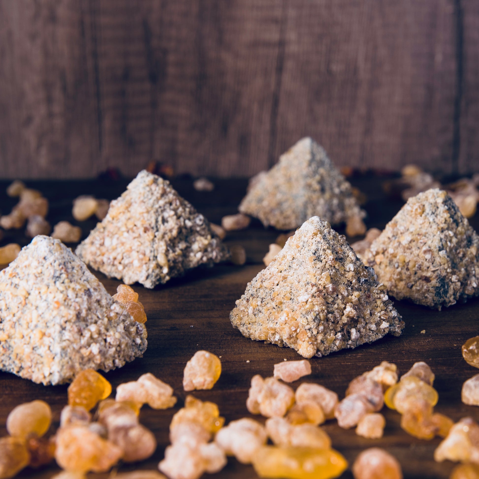 estas pirámides compuestas por un incienso completamente orgánico, de forma piramidal, compuesto por hierbas y resinas completamente naturales y ecológicas, potente fragancia Frankincense. Fragancia duradera, calidad Premium.