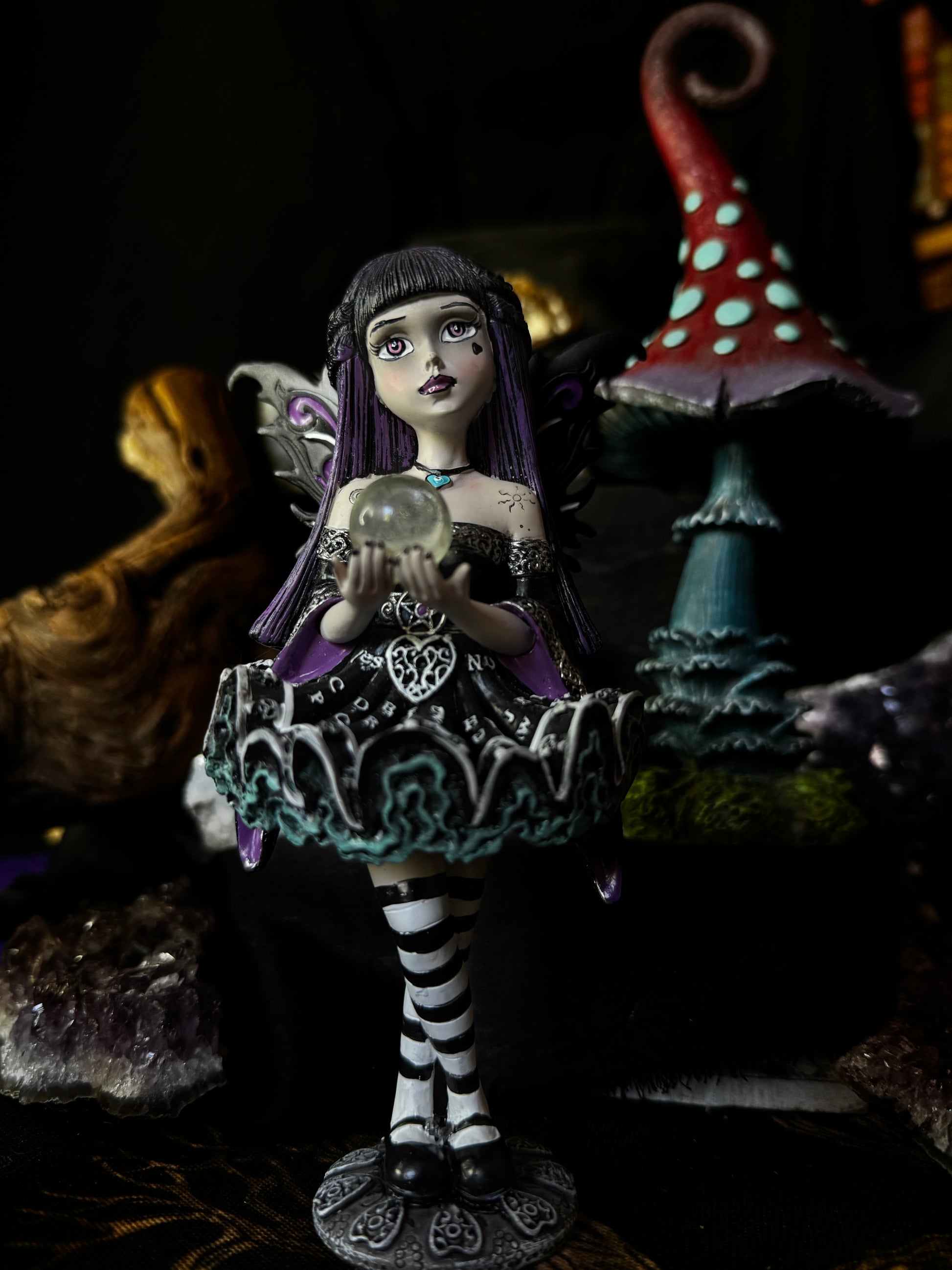 Envuelta en misterio y con una delicada bola de cristal entre sus manos, el Hada Adeline es guardiana de secretos y portadora de poderosas artes oscuras. 🌙✨